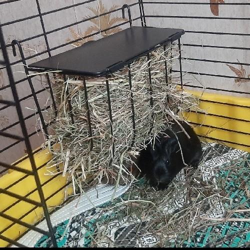 Очень хорошая и удобная сенница! Повесила кормушку выше и малыши свинки не залазят в неё, а сидят под ней. Отличная кормушка!