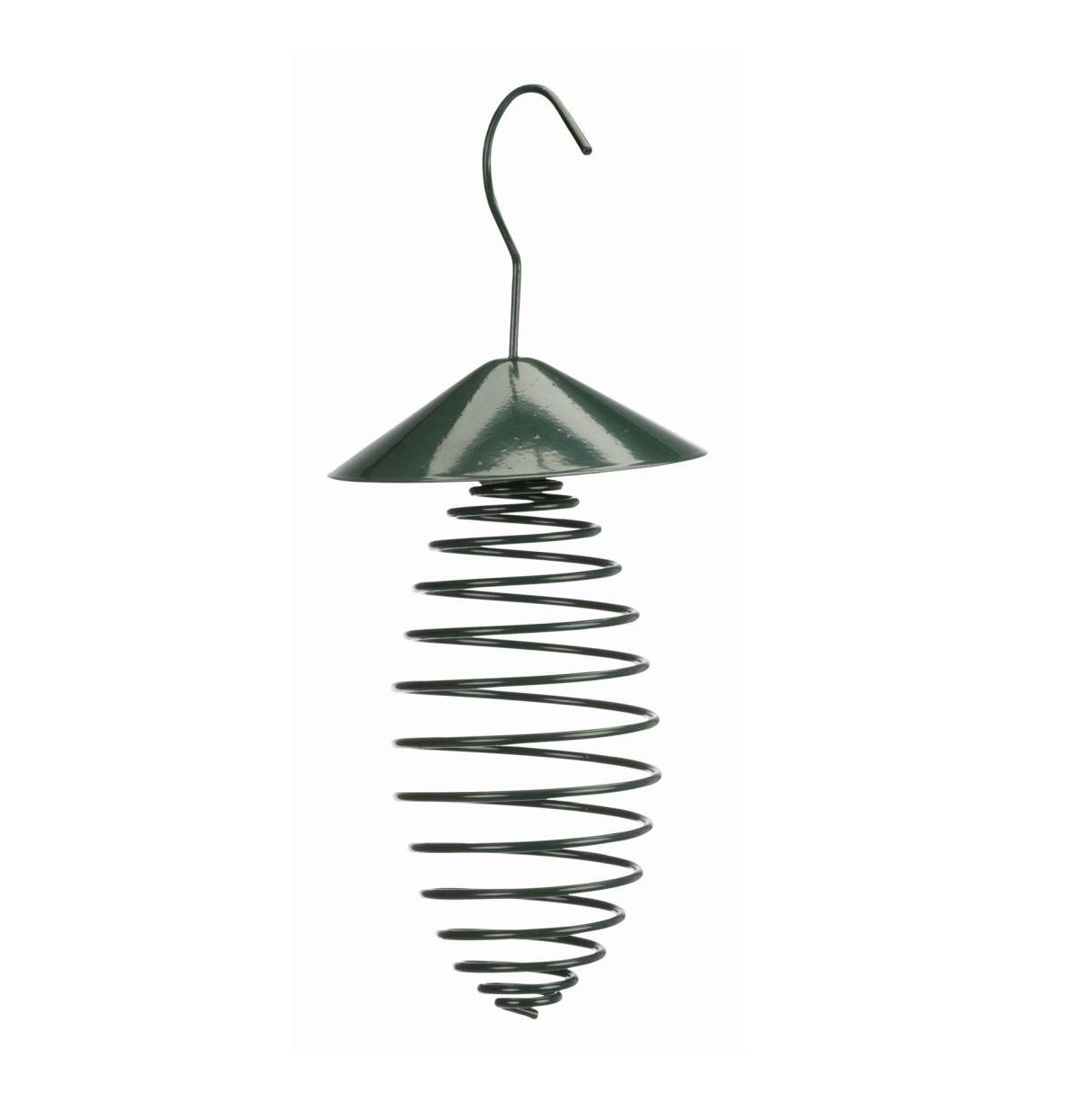 Кормушка подвесная с крышей, 10x25 см. Простая и надежная кормушка для улицы с простым механизмом крепления лакомств внутри. Для того, чтобы поместить кусочки фруктов, или специальные лакомства достаточно согнуть пружинку.
