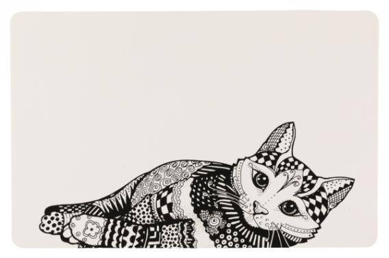 Trixie Коврик пластиковый под миску для кошек, 44х28 см, бело-черный