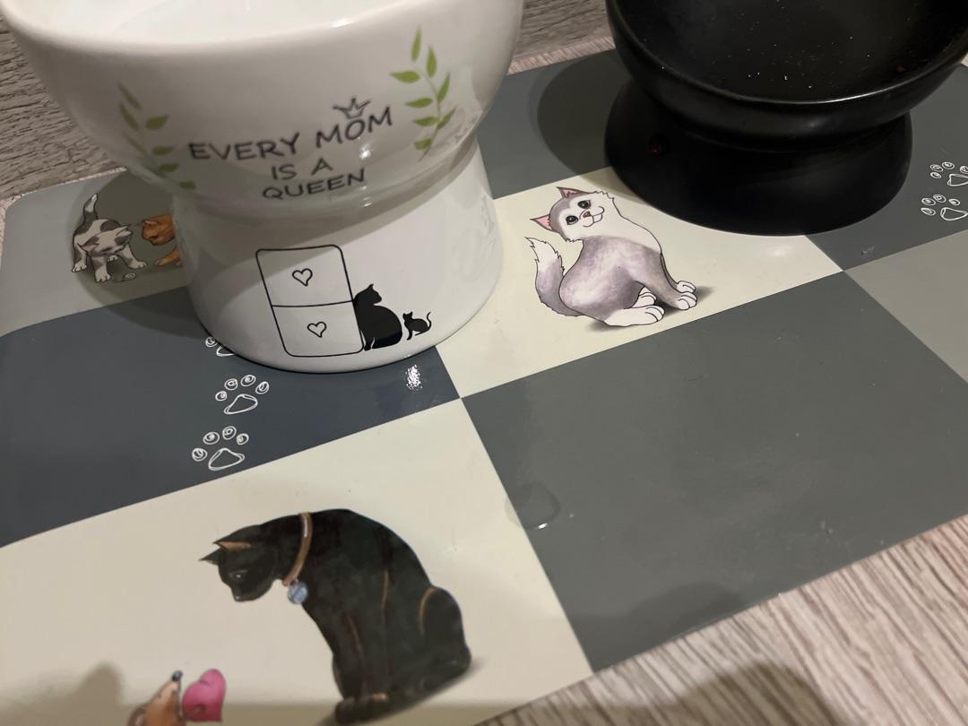 Хороший, недорогой коврик, покупали год назад набором вместе с такими же мисками, которые кот благополучно разбил, но ковриком до сих пор пользуемся и рекомендуем.Елена