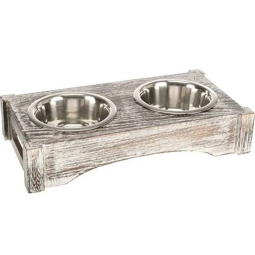 - Деревянная подставка фиксирует миски на одном месте, высота позволит питомцу не напрягать шею при приеме пищи.
