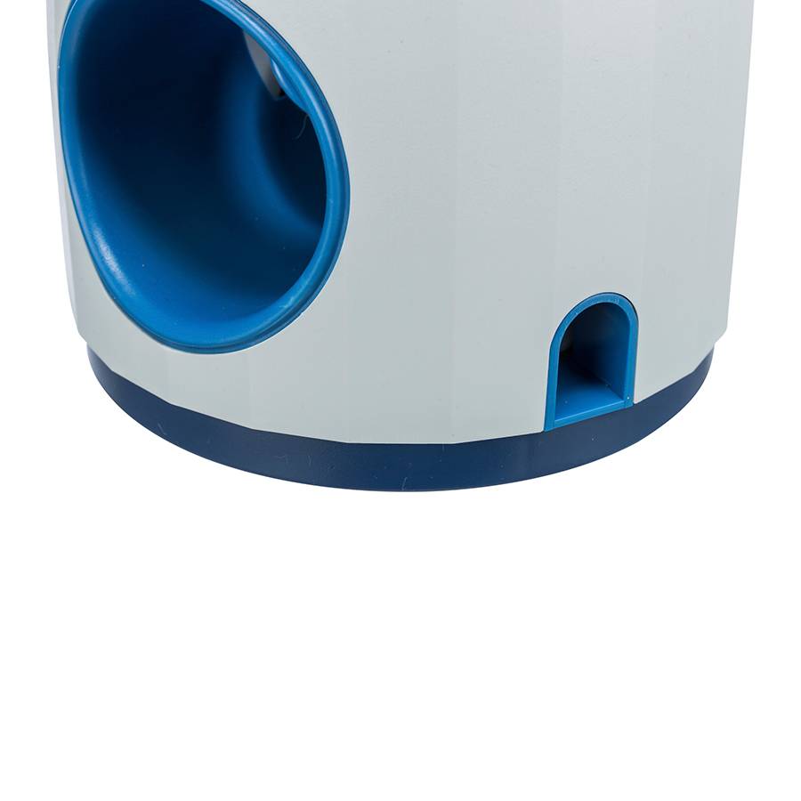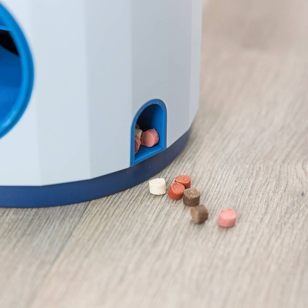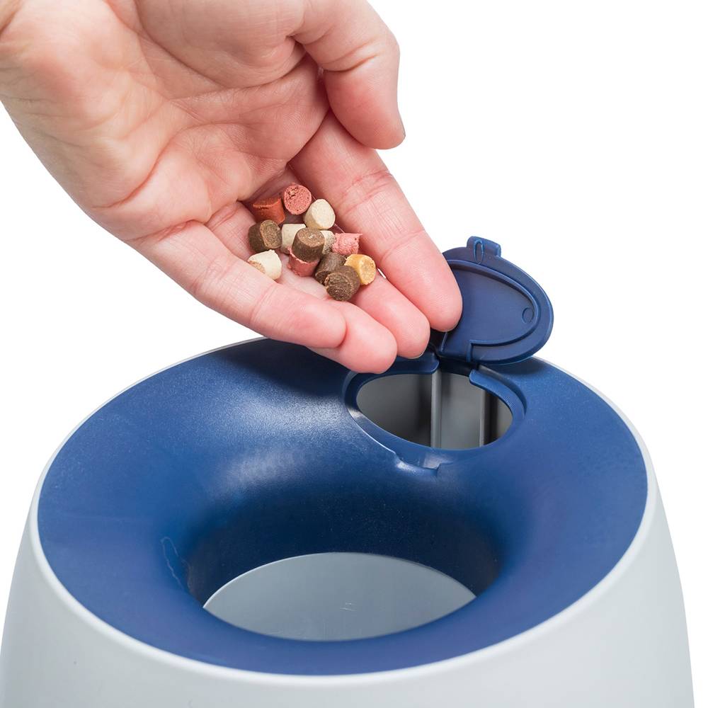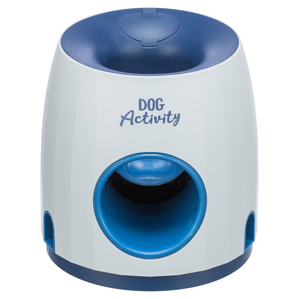 Развивающая игрушка для собак. Представляет собой устойчивую корзину, при опускании мячика в которую, с двух сторон будет высыпаться немного корма. Корпус выполнен из пластика. Подходит для сухого корма, диаметр которого не превышает 15 мм.