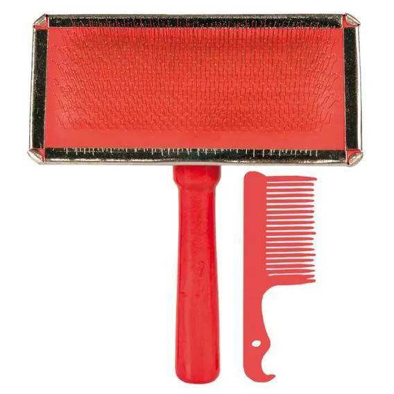Щётка-пуходерка мягкая 14 х 11,5 см с деревянной ручкой + расчёска