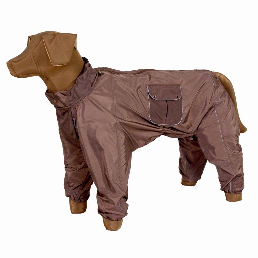 Комбинезон из плащёво-курточной водо- и ветроотталкивающей ткани, без подкладки. Предназначен для прогулок в дождливое межсезонье, в сырую грязную погоду. Производится на все породы собак.