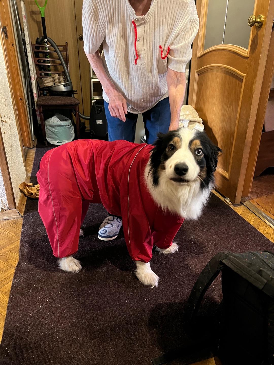 Комбинезон из плащёво-курточной водо- и ветроотталкивающей ткани, без подкладки. Предназначен для прогулок в дождливое межсезонье, в сырую грязную погоду. Производится на все породы собак.