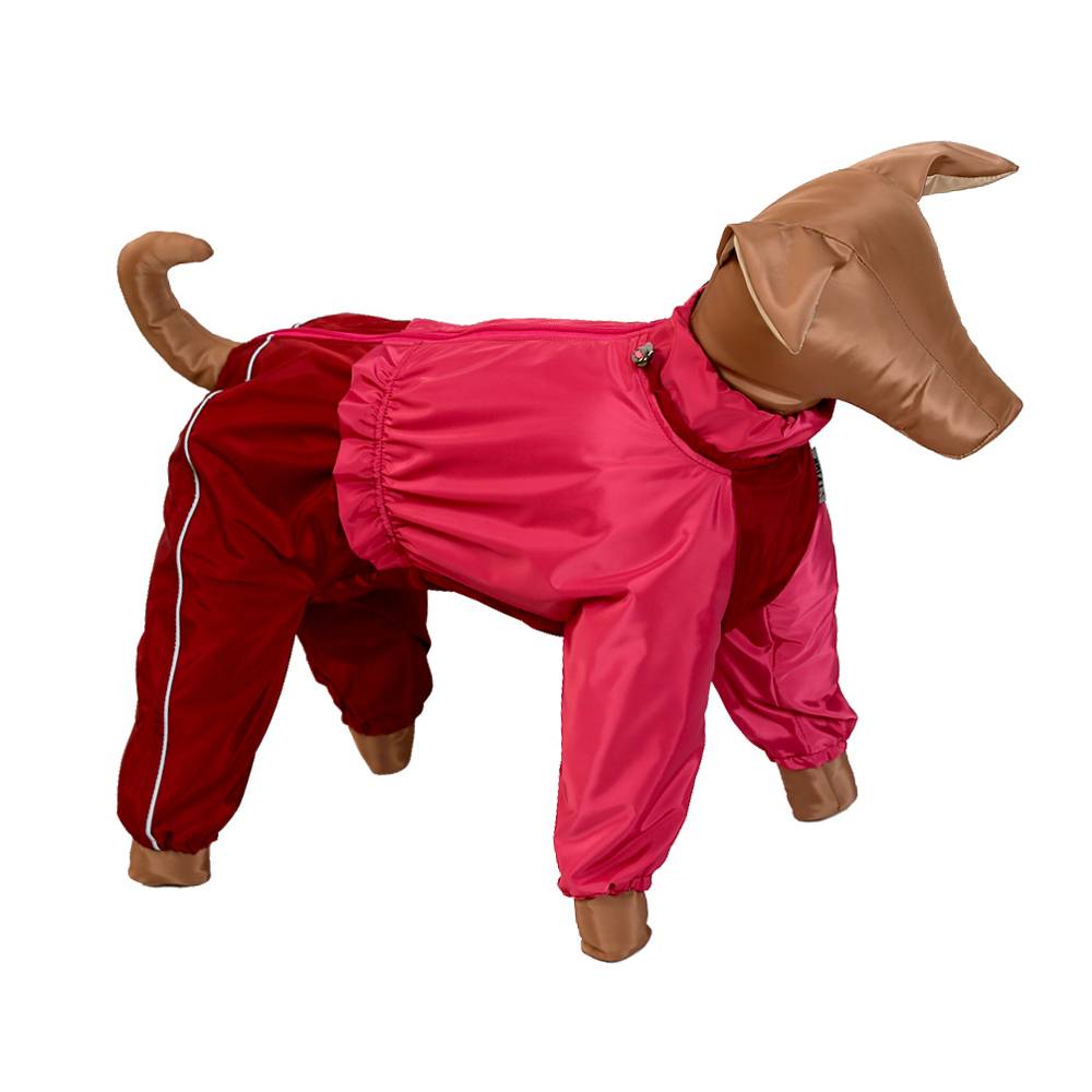 Комбинезон из плащёво-курточной водо- и ветроотталкивающей ткани, без подкладки. Предназначен для прогулок в дождливое межсезонье, в сырую грязную погоду. Производится на все породы собак.