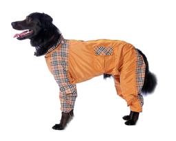 Комбинезон из плащево-курточной водо- и ветроотталкивающей ткани, утепленный подкладкой из флиса/полартека. Предназначен для выгула собак в холодную/морозную погоду. Производится на все породы собак.