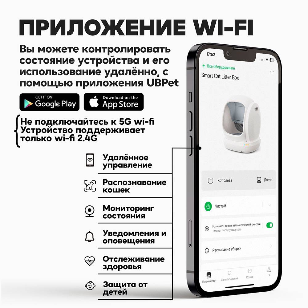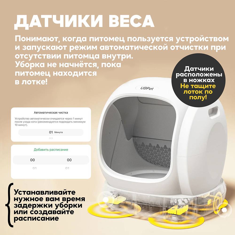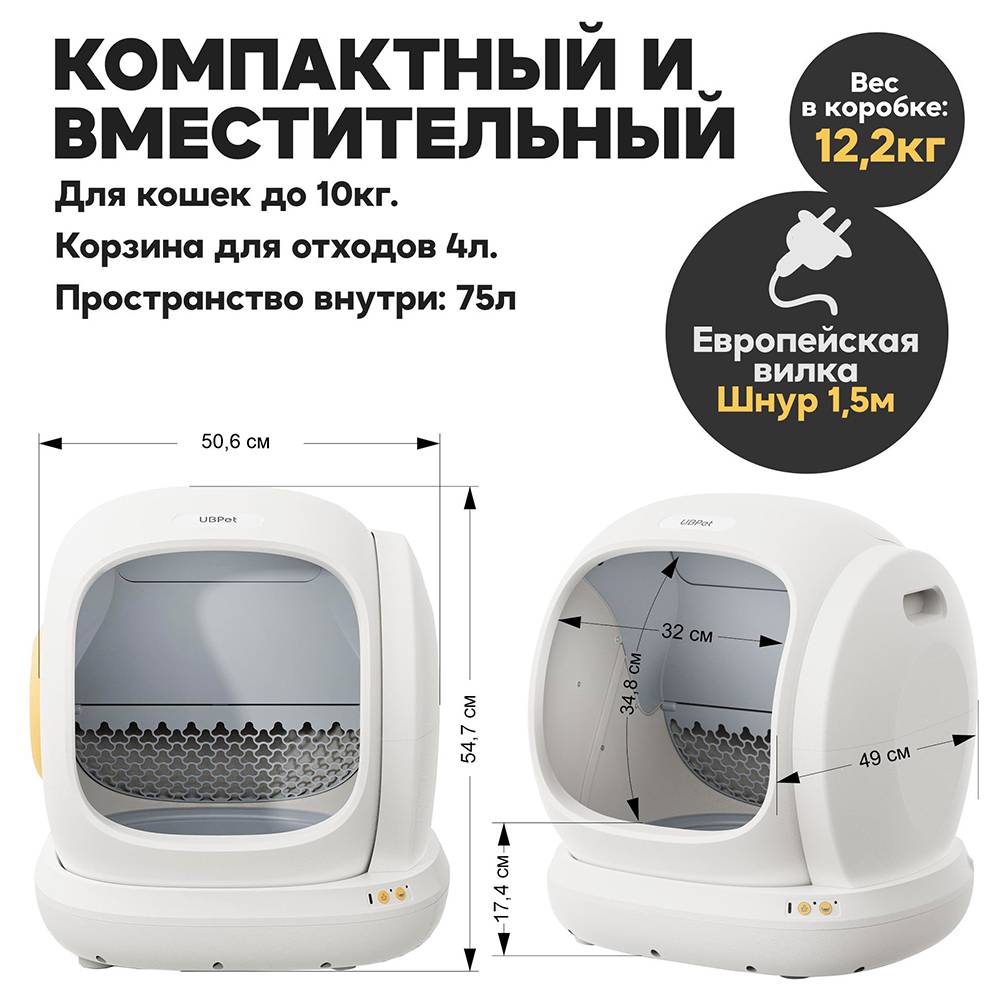 Автоматический лоток для кошек UBPet с просторным входом от UNIQPET для любого типа комкующегося наполнителя. Идеально подходит котикам от 1,5 – 10кг.