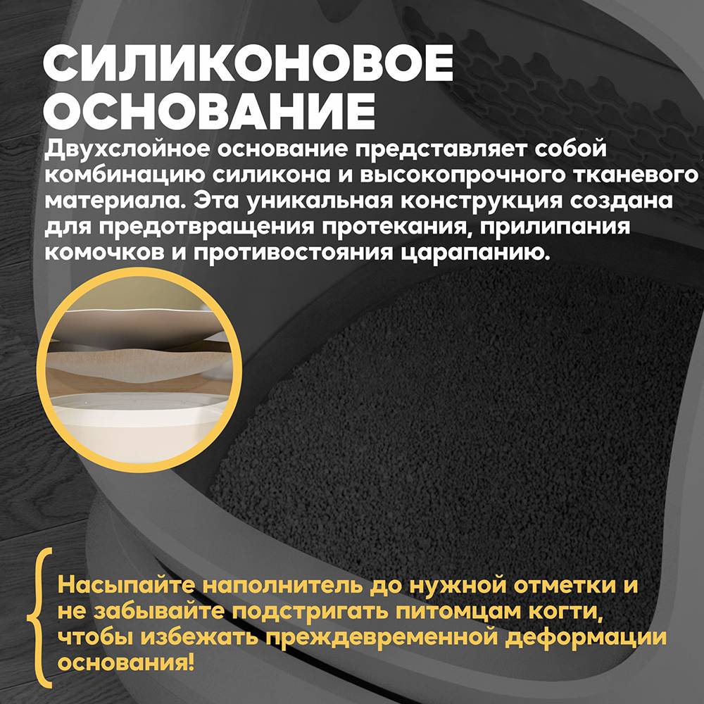 Двойное силиконовое основание. Представляет собой комбинацию силикона и высокопрочного тканевого материала. Эта уникальная конструкция гарантирует, что основание не будет протекать, предотвращает налипание и выдерживает царапины.