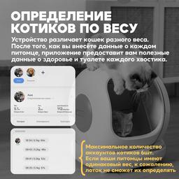 - С помощью приложения вы можете включить режим «Не беспокоить», режим «Защиты от детей», после засыпания распределить наполнитель по основанию, создать собственное расписание уборки в заданное время, отследить какие-либо изменения веса питомца и многое другое.
