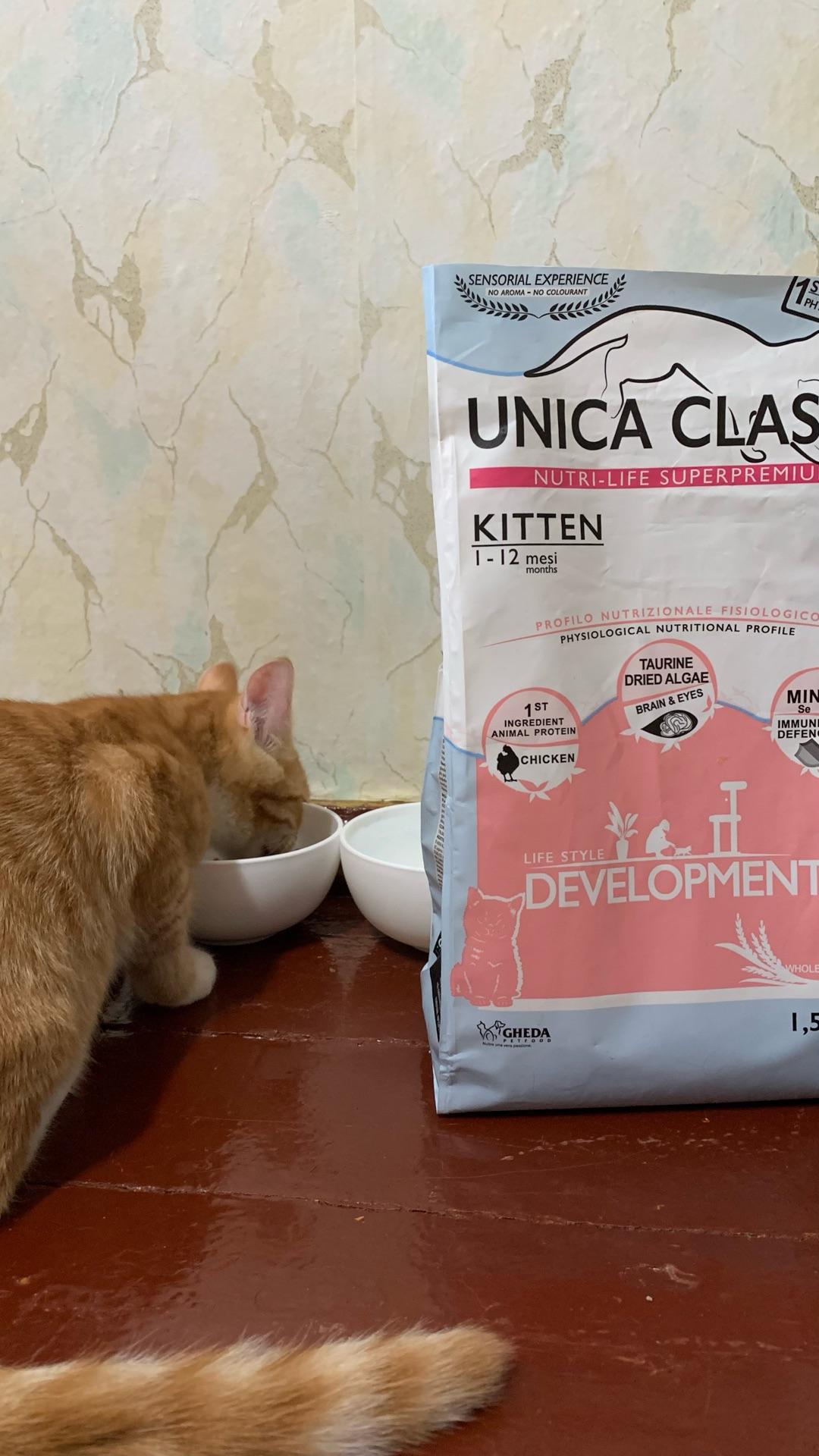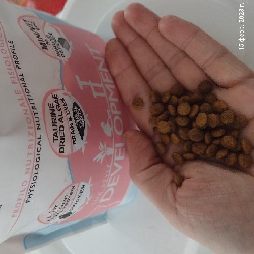 Кот есть с большим аппетитом,гранула универсальная и мельче,чем во взрослом.Плюс радует ,что произведено в ИталииКомментарий