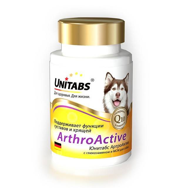 Юнитабс АртроАктив применяют для поддержания функции суставов и хрящей у собак крупных пород с 3-месячного возраста, у пожилых собак, у собак, имеющих лишний вес.
