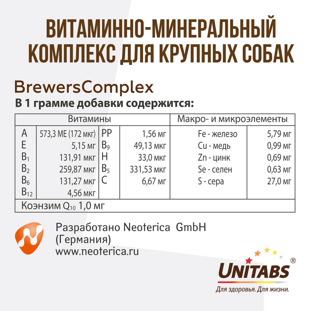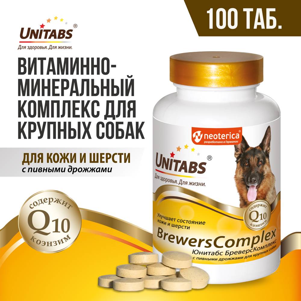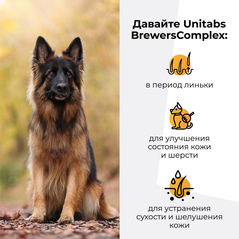 Юнитабс БреверсКомплекс (Unitabs BrewersComplex) – кормовая добавка для улучшения состояния кожи и шерсти у собак.