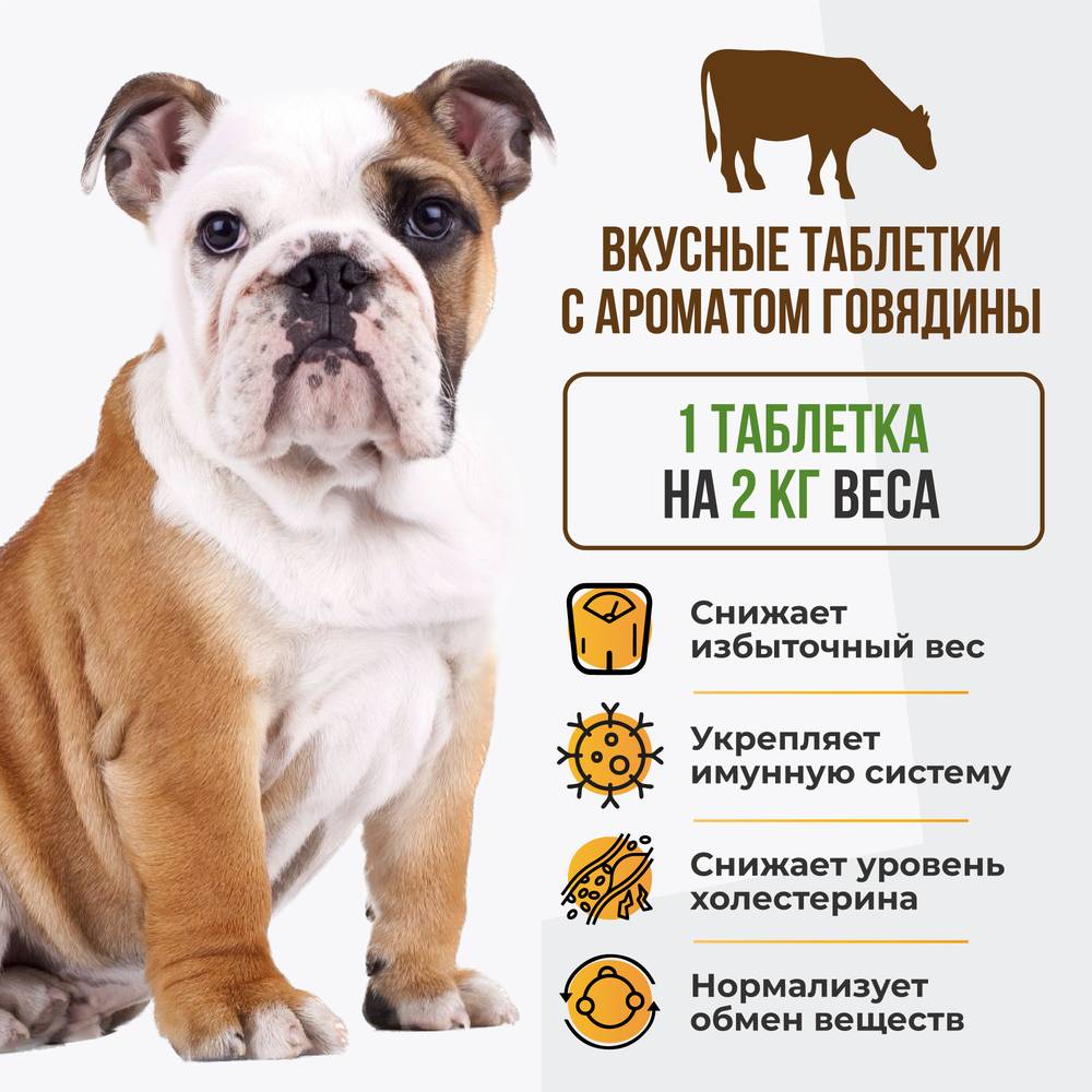 6. Юнитабс СлимКомплекс применяют собакам с 6-месячного возраста с избыточной массой тела с целью ее снижения за счет уменьшения жировых отложений при отсутствии заболеваний.