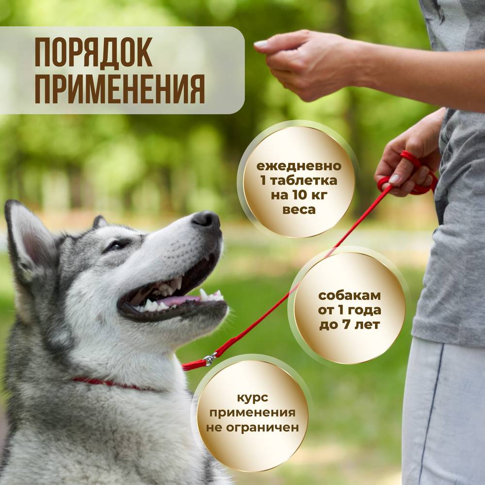 • Добавку вводят собакам с кормом или дают перорально с руки, ежедневно, 1 раз в сутки из расчета 1 таблетка массой 1,5 г на 10 кг массы тела или 1 таблетка массой 0,75 г на 5 кг массы тела.