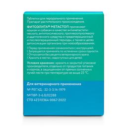 В послеоперационный период Фитоэлиту Метастоп применяют в течение всей жизни. Каждые 3-4 месяца, курсами по 4-5 дней, 3 раза в день: собакам по 1 таблетке на 10 кг массы, кошкам по 1 таблетке.