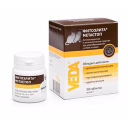 По внешнему виду Фитоэлита Метастоп представляет собой двояковыпуклые таблетки от белого до светло-желтого цвета. Допускаются вкрапления и незначительная мраморность. Выпускают Метастоп расфасованным по 50 таблеток в полимерные банки, помещенные в картонную коробку. Каждую упаковку маркируют с указанием: организации-производителя, ее адреса и товарного знака, названия лекарственного средства, его состава, назначения и способа применения, количества таблеток в упаковке, условий хранения, номера серии, срока годности, даты изготовления, надписей «Для животных», «Сырье прошло радиобиологический контроль», номера государственной регистрации, информацию о подтверждении соответствия, штрихового кода, обозначения СТО и снабжают инструкцией по применению.