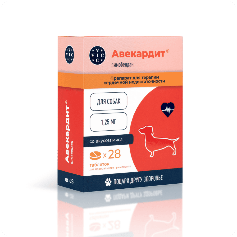 Вик – здоровье животных VIC Авекардит 1,25 мг Таблетки для терапии сердечной недостаточности у собак, со вкусом мяса, 28 таблеток