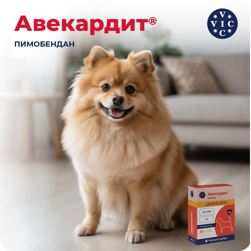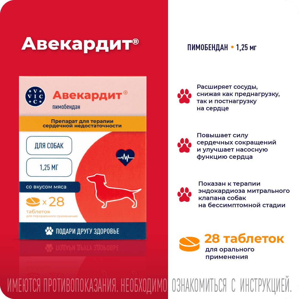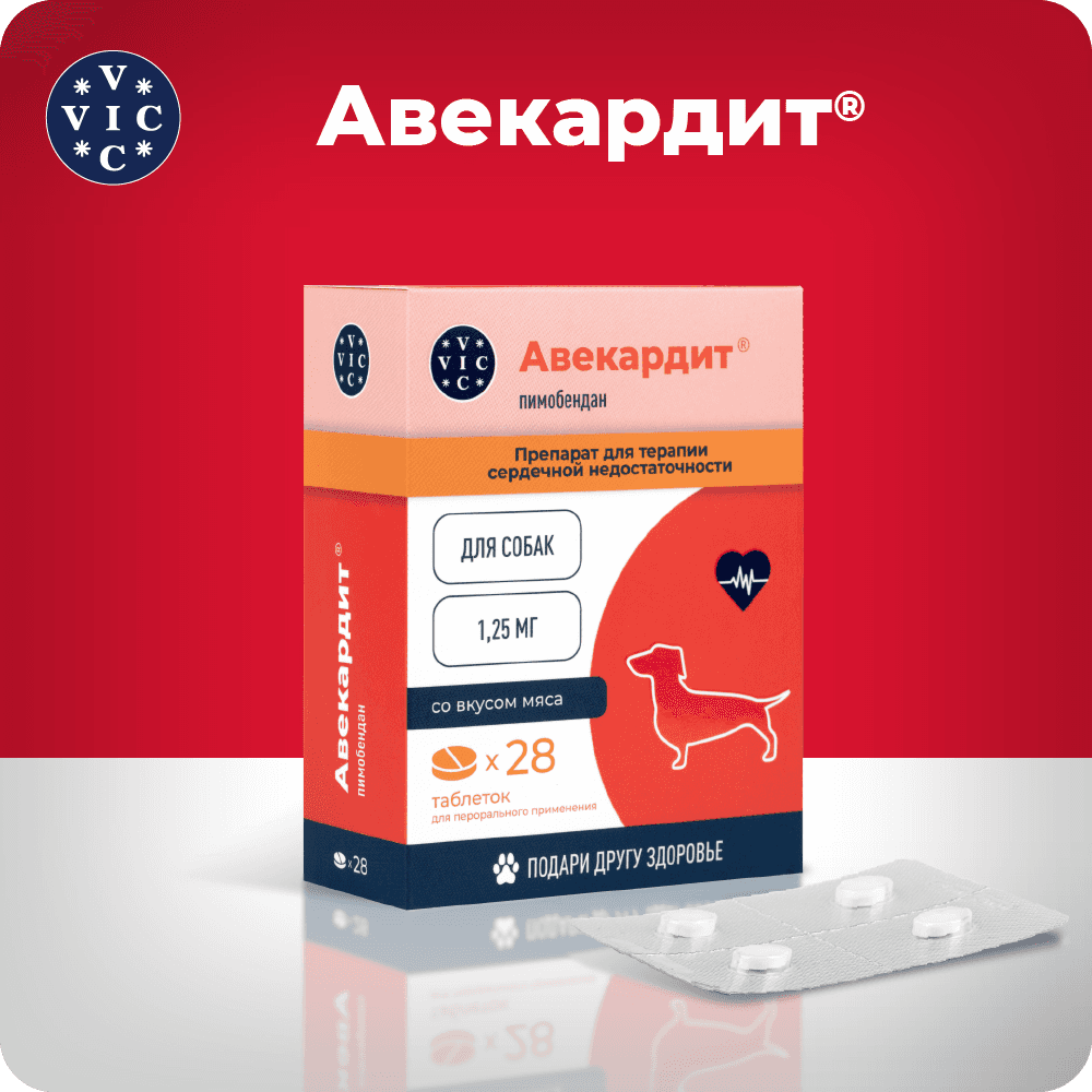 Вик – здоровье животных VIC Авекардит 1,25 мг Таблетки для терапии сердечной недостаточности у собак, со вкусом мяса, 28 таблеток