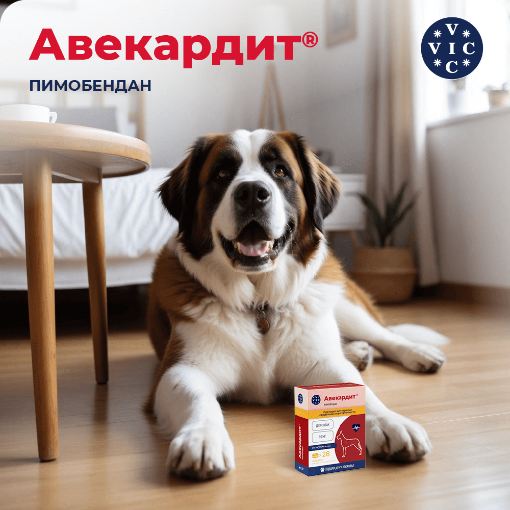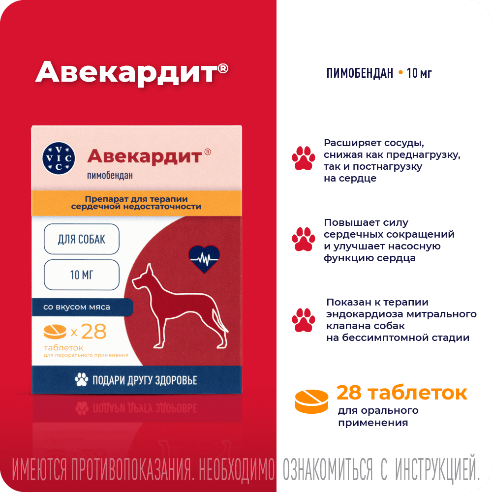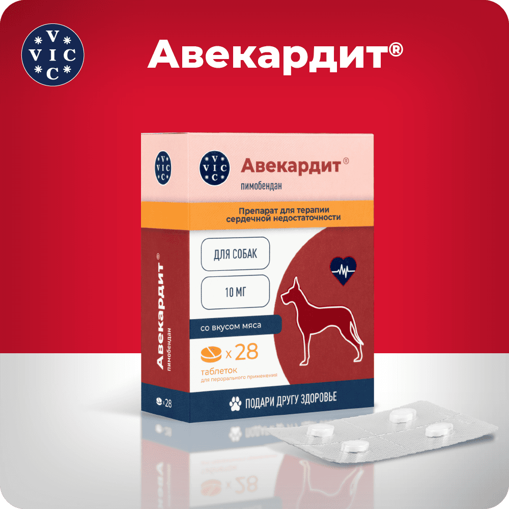 Вик – здоровье животных VIC Авекардит 10 мг Таблетки для терапии сердечной недостаточности у собак, со вкусом мяса, 28 таблеток