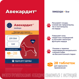 АВЕКАРДИТ® назначают собакам для лечения сердечной недостаточности вызванной дилатационной кардиомиопатией, нарушениями со стороны двустворчатых и трехстворчатых клапанов. К другим причинам, вызывающим развитие сердечной недостаточности, принадлежат кардиосклероз, миокардит, перикардит, инфаркт миокарда, врожденные пороки, артериальная гипертензия. Иногда патологическое состояние развивается на фоне длительного пребывания гельминтов в организме питомца.