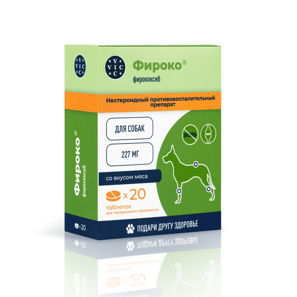 Фирококсиб является селективным ингибитором циклооксигеназы-2 (СОХ-2), избирательно нарушает образование простагландинов, участвующих в формировании воспалительной реакции, подавляет экссудативную и пролиферативную фазы воспаления. Действует преимущественно в очаге воспаления и практически не влияет на продукцию простагландинов, регулирующих почечный кровоток и целостность слизистой оболочки желудочно-кишечного тракта. Оказывает болеутоляющее, противовоспалительное и жаропонижающее действие. После перорального введения собакам в рекомендованной дозе фирококсиб быстро всасывается, максимальная концентрация в крови достигается через 1,25 часа.