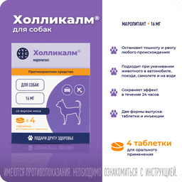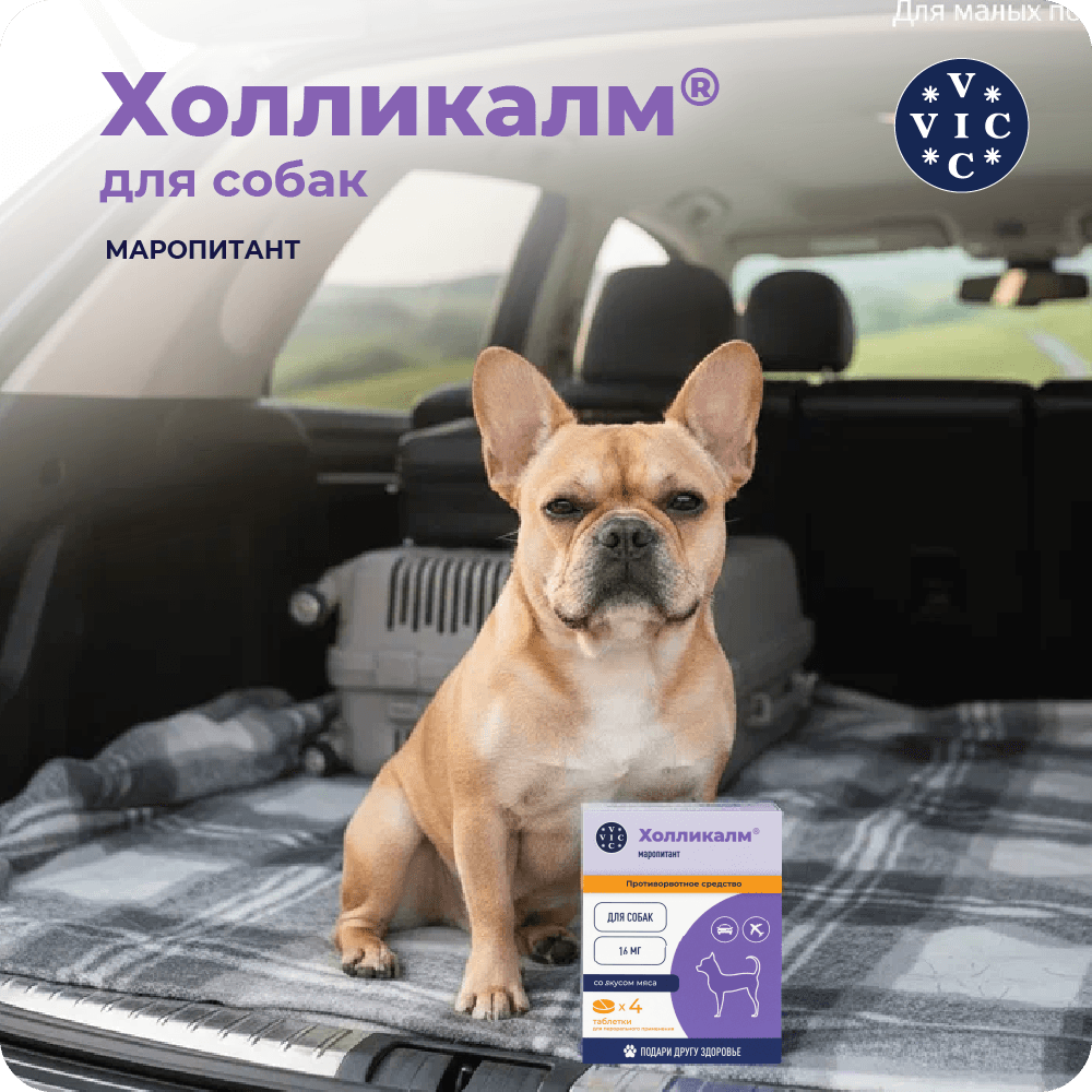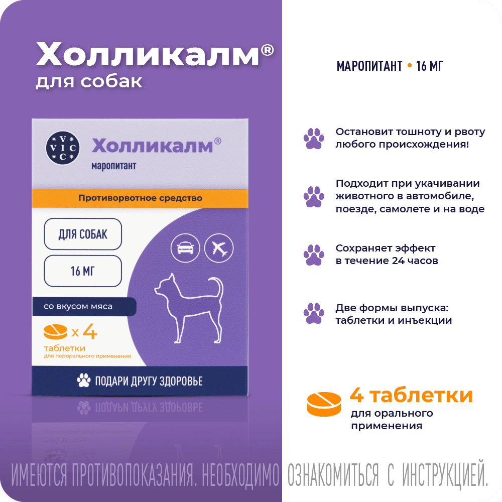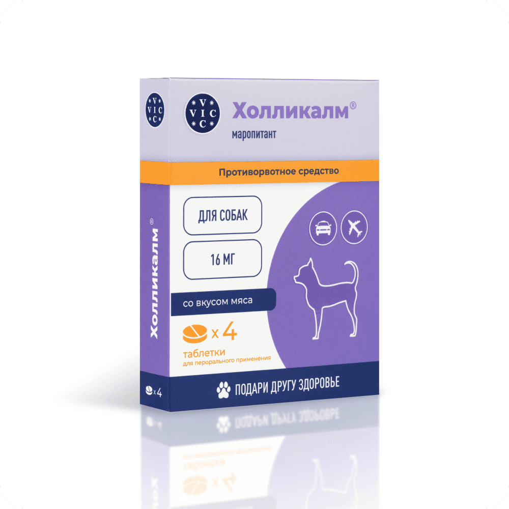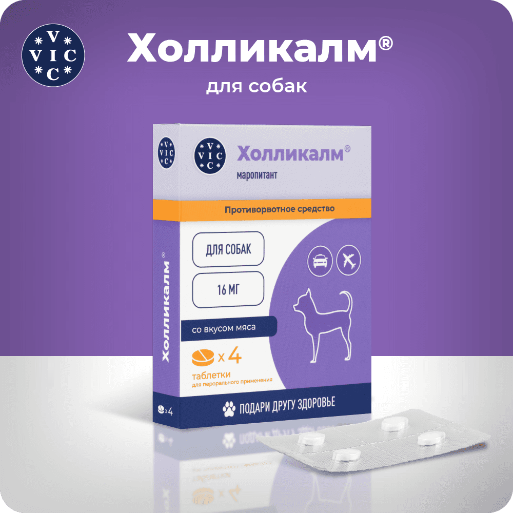 Вик – здоровье животных VIC Холликалм 16 мг Противорвотное средство для собак, со вкусом мяса, 4 таблетки