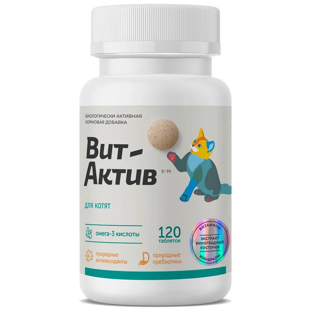 Вит-Актив - витаминно-минеральный комплекс нового поколения с природными антиоксидантами и пребиотиками. Обеспечивает физиологическую потребность котят в витаминах, аминокислотах и минеральных веществах. Способствует правильному развитию мозга и зрения котят, укрепляют иммунную систему, поддерживают рост и развитие. Обеспечивает структурную прочность костей и зубов. Снижает риск возникновения заболеваний и ускоряет процесс выздоровления. Повышает усвоение витаминов, микроэлементов и антиоксидантов.