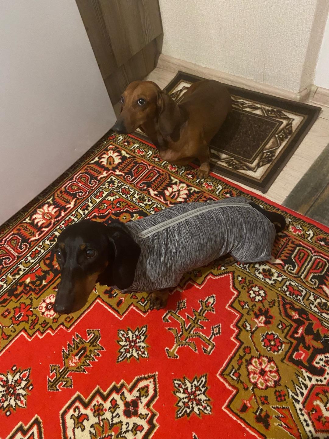 Хорошо прилегает к телу собачки. Собака не может снять попону, что важно после операции. Фланелевые на завязках быстро научилась снимать. В этой Комфортно спать.Размер отлично подошел на стандартную таксу, 10 кг. Рекомендую.