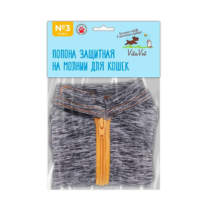 VitaVet Попона послеоперационная на молнии для кошек бифлекс 3,0-3,8кг, 28 см, №3