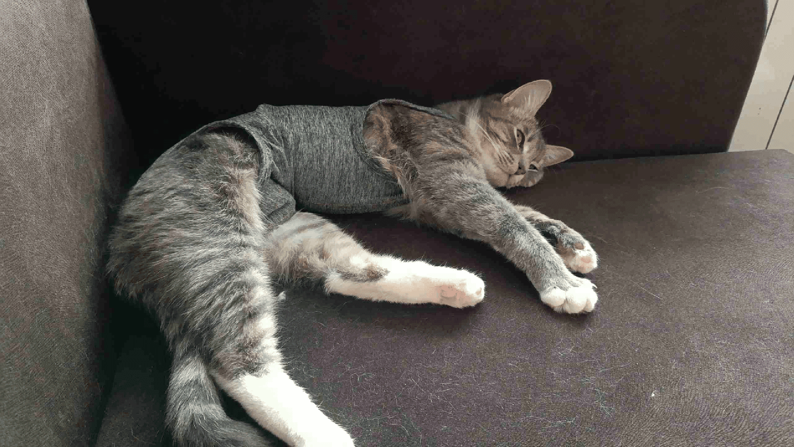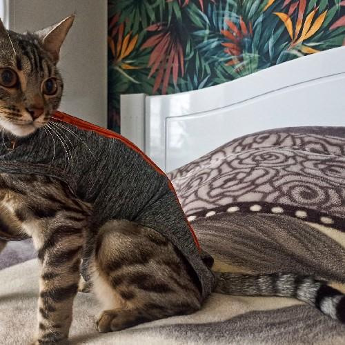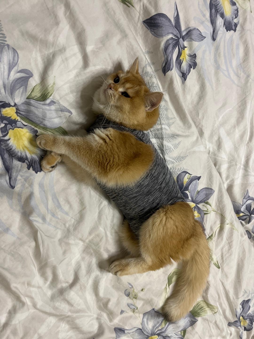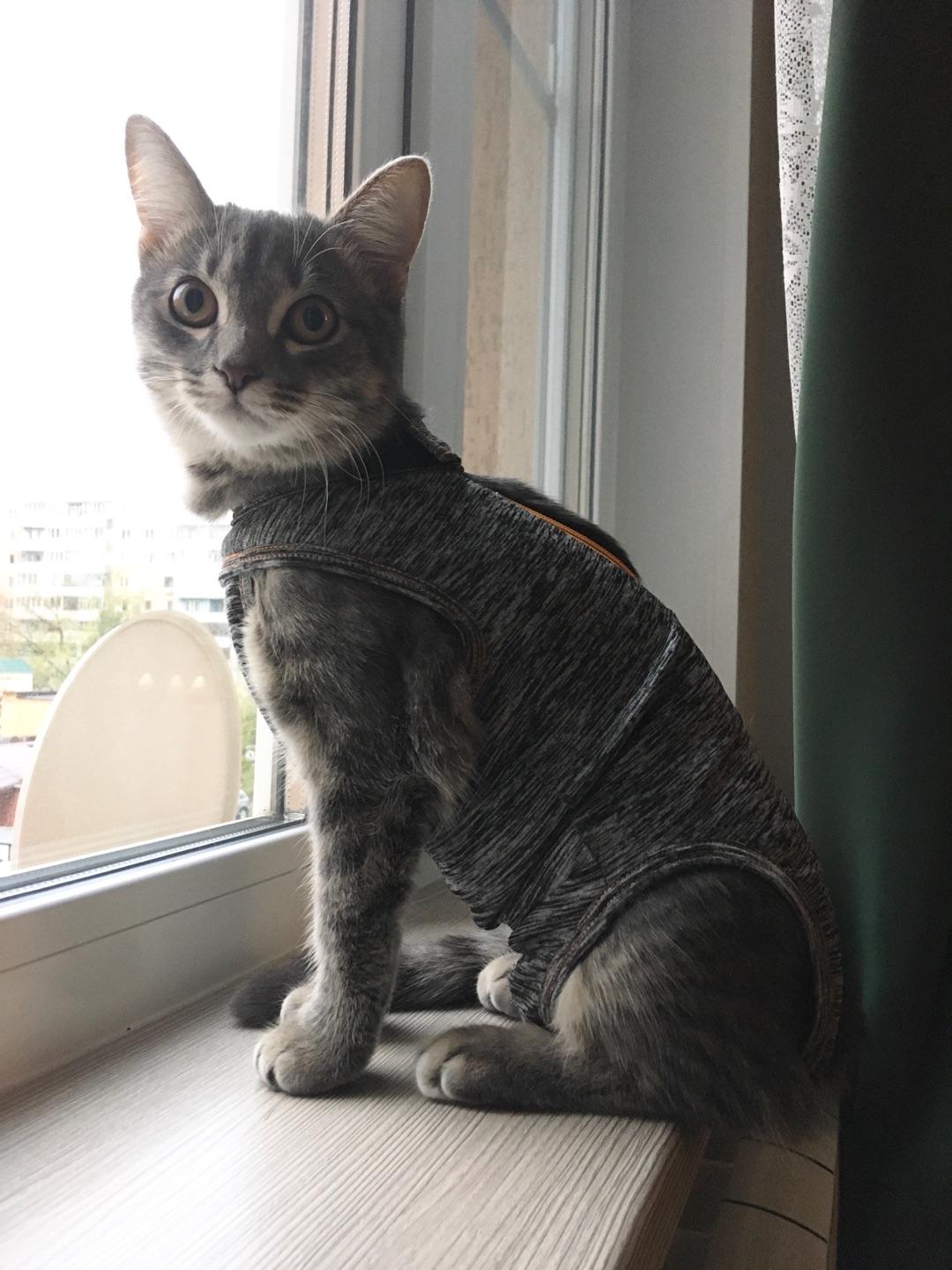 Попона идеальна после операции, кошка даже не делала попыток еë снять. Предыдущую на завязках изорвала до дыр