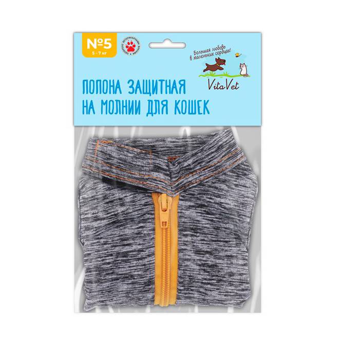 VitaVet Попона послеоперационная на молнии для кошек бифлекс 5,0-7,0кг, 31 см, №5