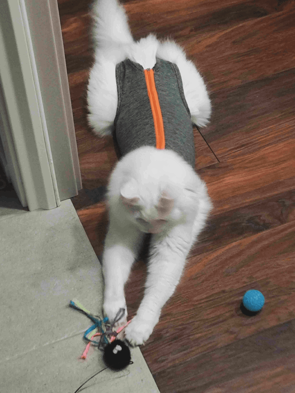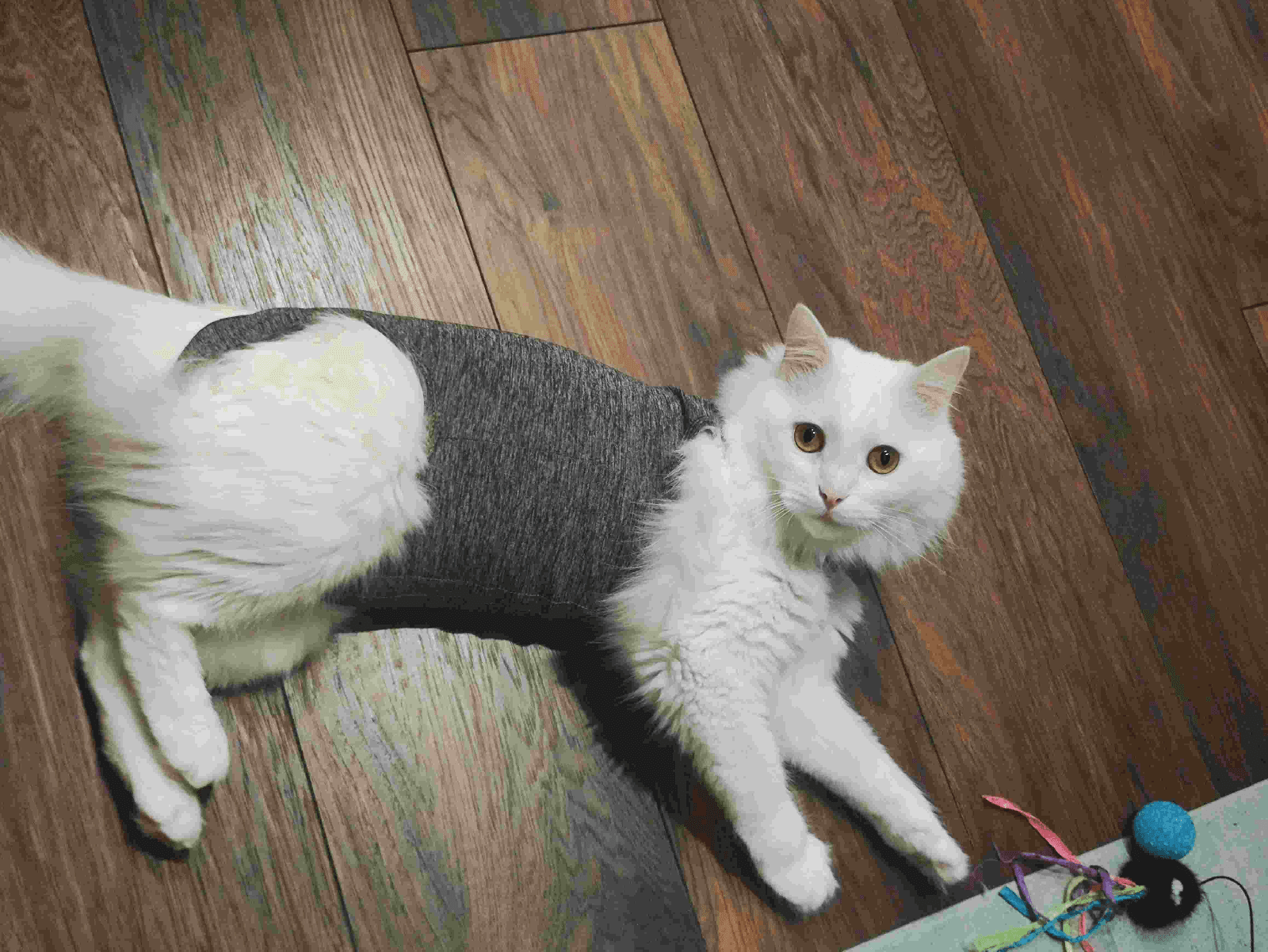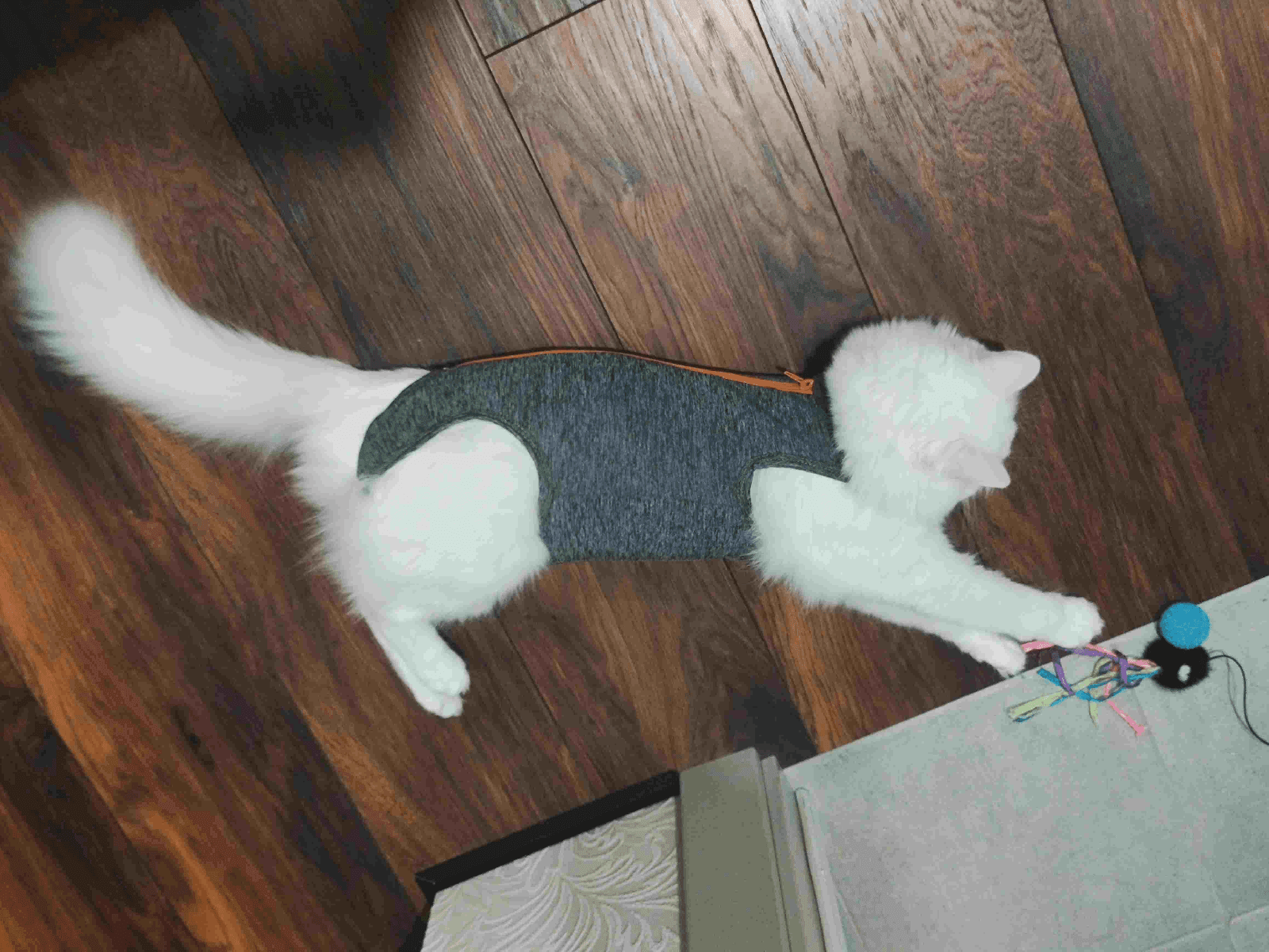 • Крой попоны выполнен с учётом анатомических особенностей кошек, что позволяет сохранить свободу движения  во время реабилитации.
