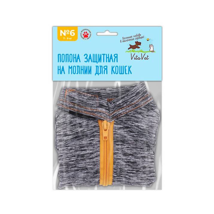 VitaVet Попона послеоперационная на молнии для кошек бифлекс 7,0-9,0кг, 33 см, №6