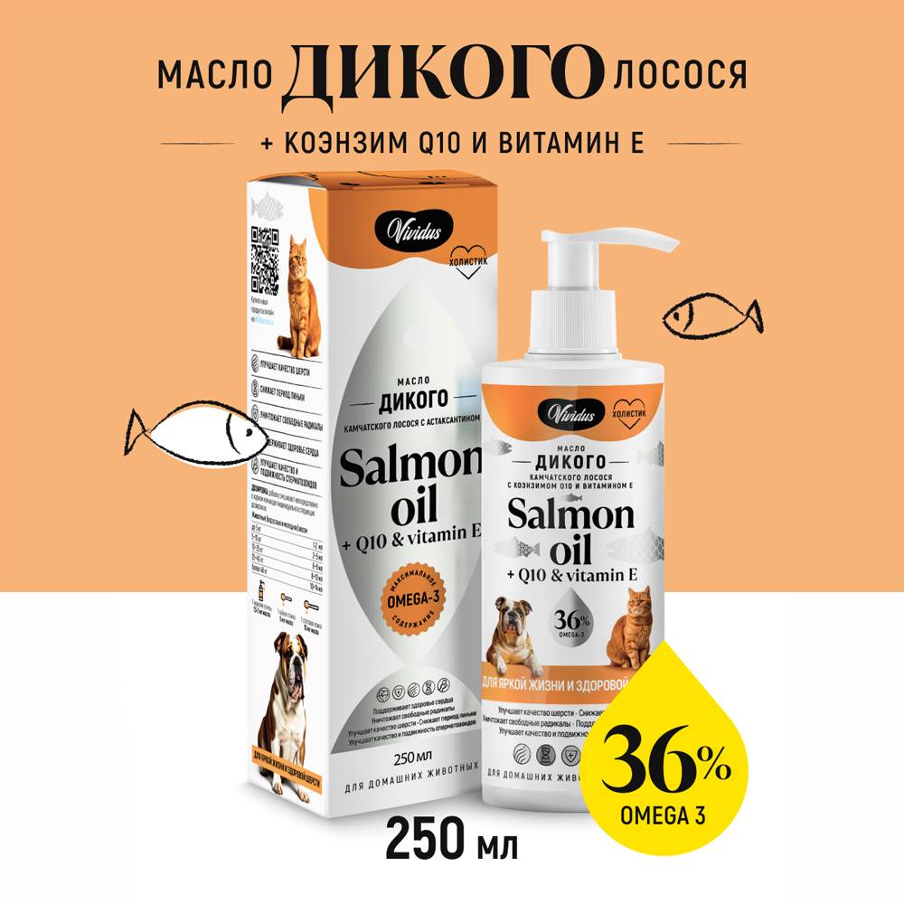 Лососевое масло для собак и кошек Vividus с коэнзимом Q10 — это натуральная добавка, специально разработанная для поддержания здоровья домашних животных. Дикий лосось намного чище и экологичнее своего искусственного собрата. По содержанию полезных омега-3 кислот дикий лосось также богаче фермерской рыбы. В масле содержится около 36% омега-3, против 10-20% в продуктах из фермерского лосося.