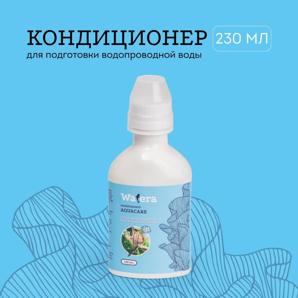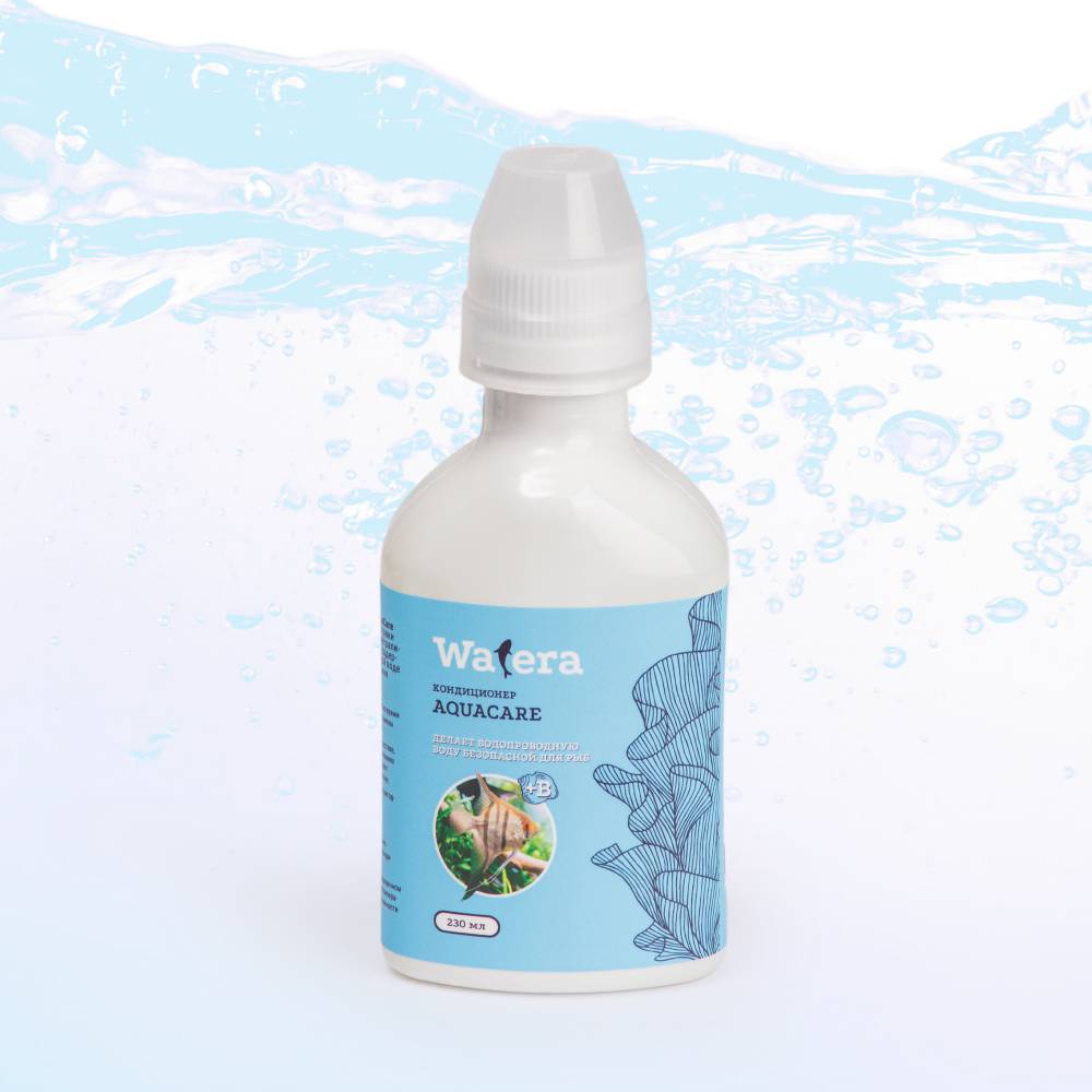 Кондиционер AquaCare от бренда Watera предназначен для подготовки водопроводной воды для аквариума. Средство нейтрализует вредные вещества, содержащиеся в воде (хлор, хлорамин, медь, цинк и свинец).