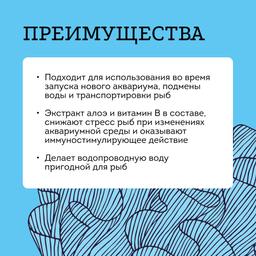 • Делает водопроводную воду пригодной для обитания аквариумных рыбок.