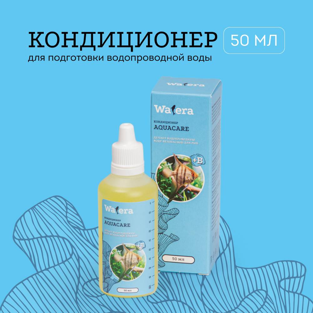 Кондиционер AquaCare от бренда Watera предназначен для подготовки водопроводной воды для аквариума. Средство нейтрализует вредные вещества, содержащиеся в воде (хлор, хлорамин, медь, цинк и свинец).
