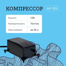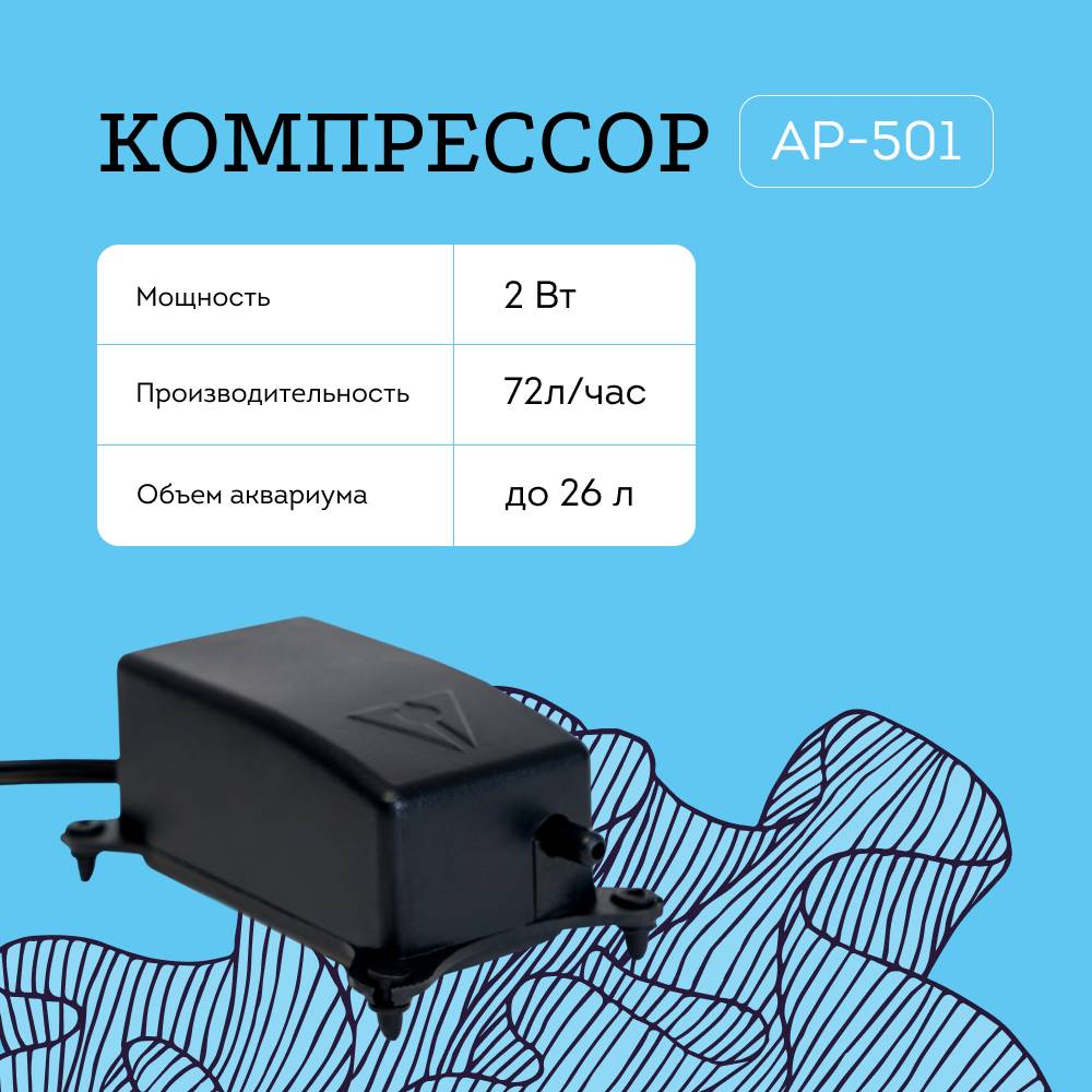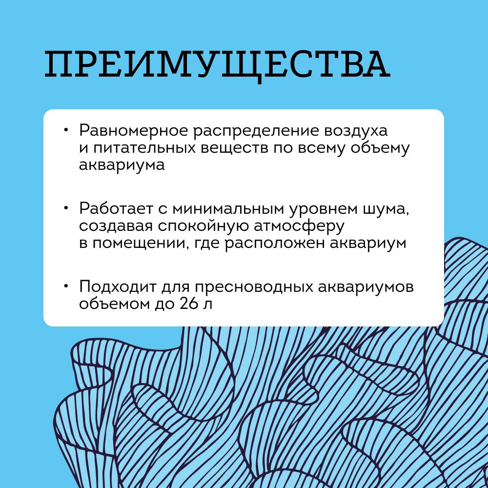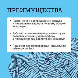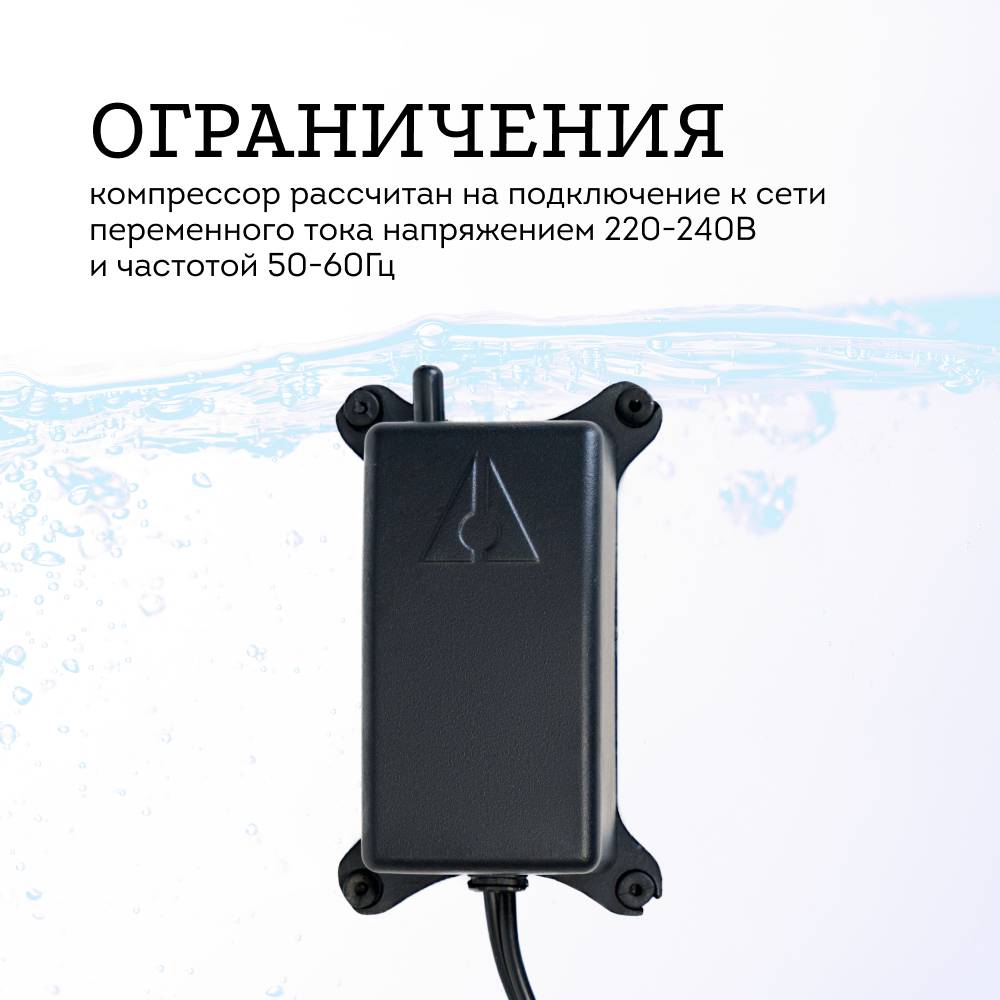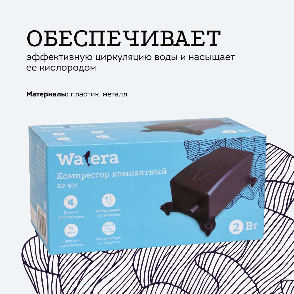 Watera Компрессор Compact с мощностью 2 Ватта обеспечивает эффективную циркуляцию и насыщает воду в аквариуме кислородом. Равномерное распределение воздуха и питательных веществ по всему объему аквариума способствует улучшению качества воды и создает комфортные условия для его обитателей.