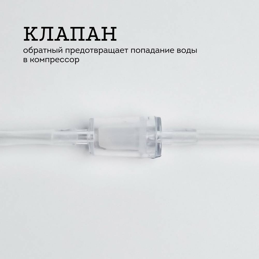 - Обратный клапан предотвращает попадание воды в компрессор