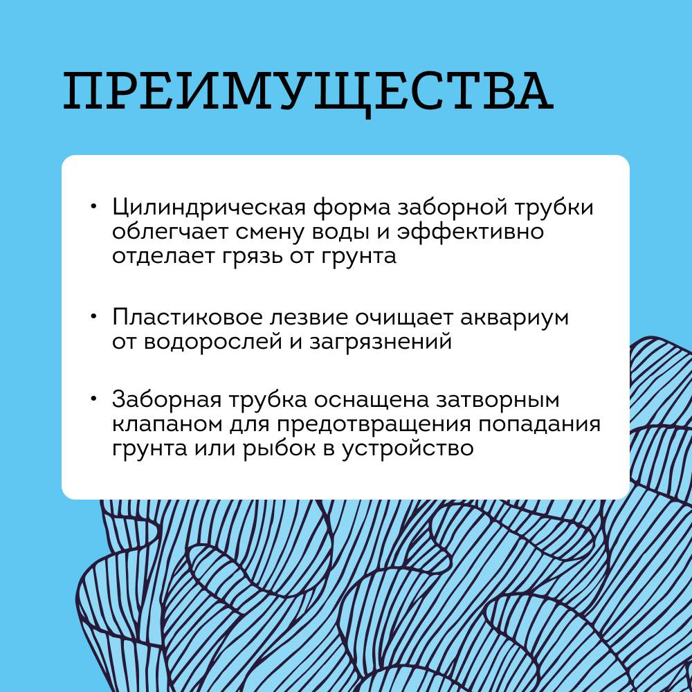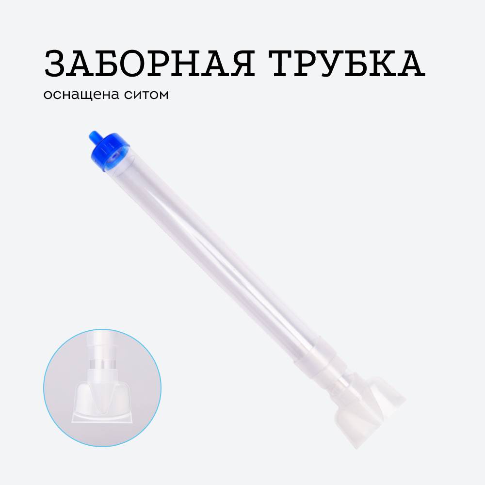 - Цилиндрическая форма заборной трубки облегчает смену воды и эффективно отделает грязь от грунта.