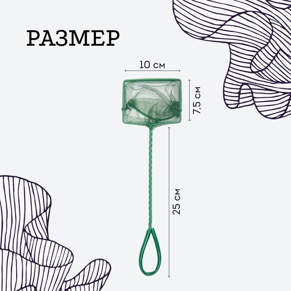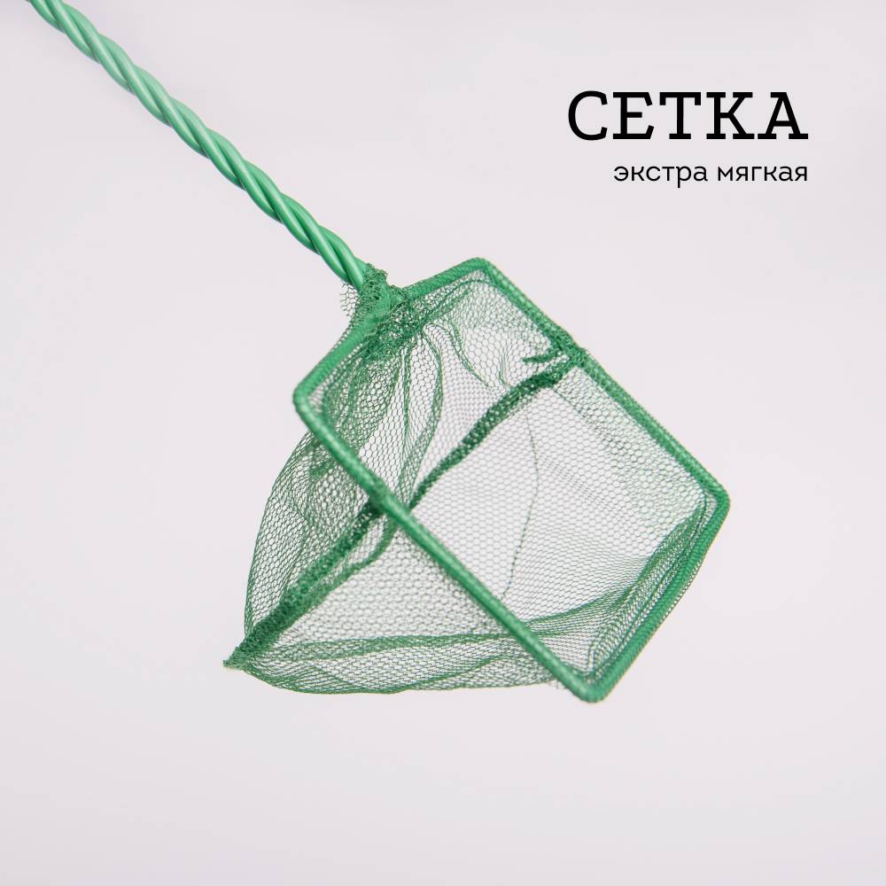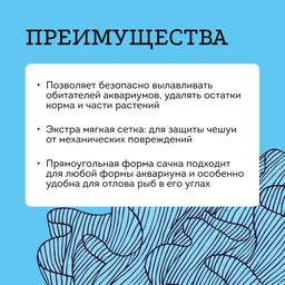 - Прямоугольная форма сачка подходит для любой формы аквариума и особенно удобна для отлова рыб в его углах.