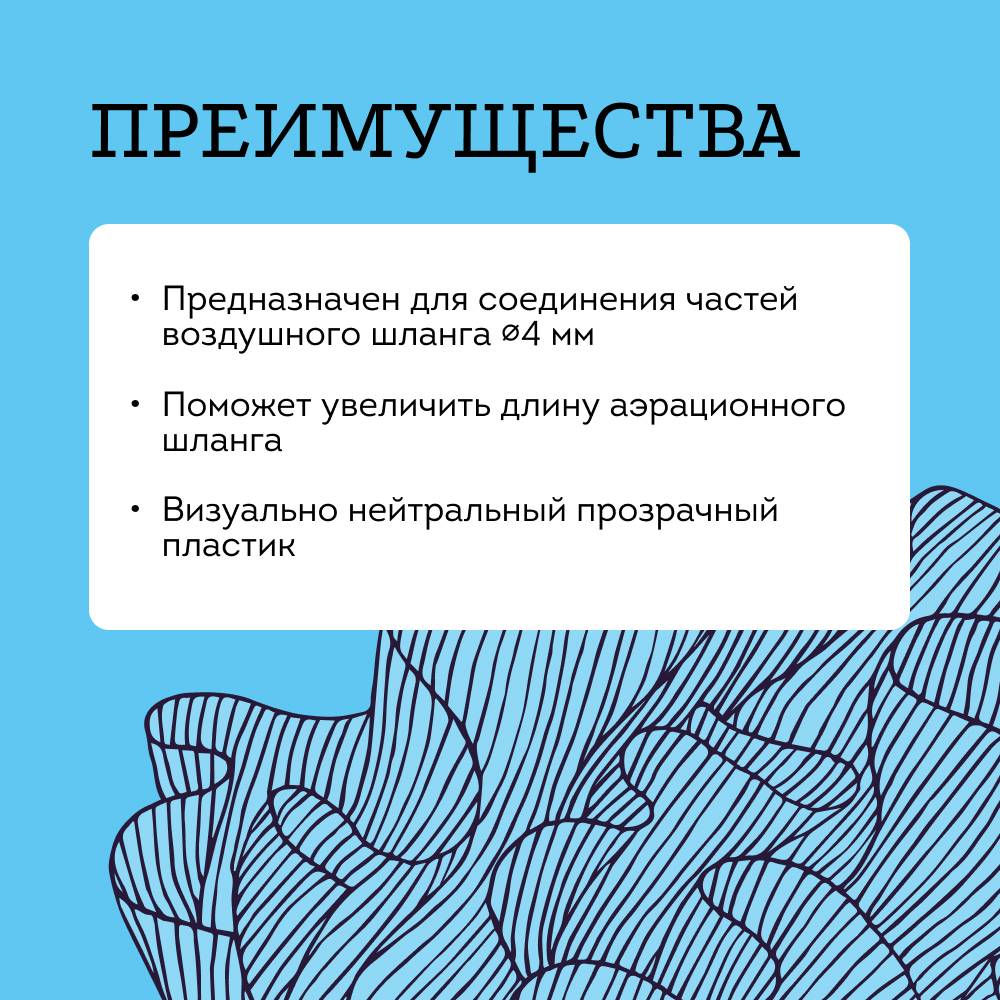 Соединитель воздушный прямой предназначен для соединения частей воздушного шланга диаметром 4 мм.