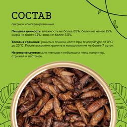 Сверчок консервированный от Watera – универсальное лакомство для большинства рептилий, амфибий, паукообразных, насекомоядных животных (еноты, ежи), грызунов, приматов, крупных птиц, декоративных рыб и других экзотических питомцев.