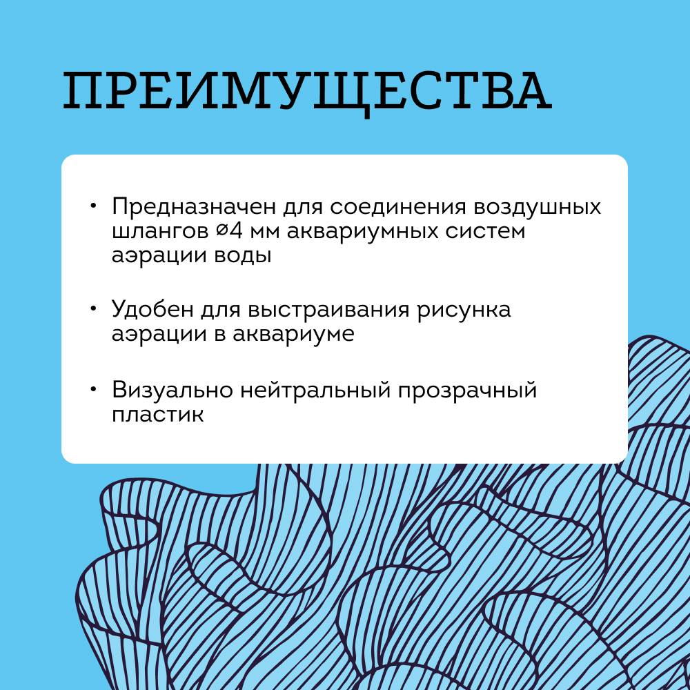Соединитель Y образный предназначен для соединения воздушных шлангов диаметром 4 мм аквариумных систем аэрации воды.