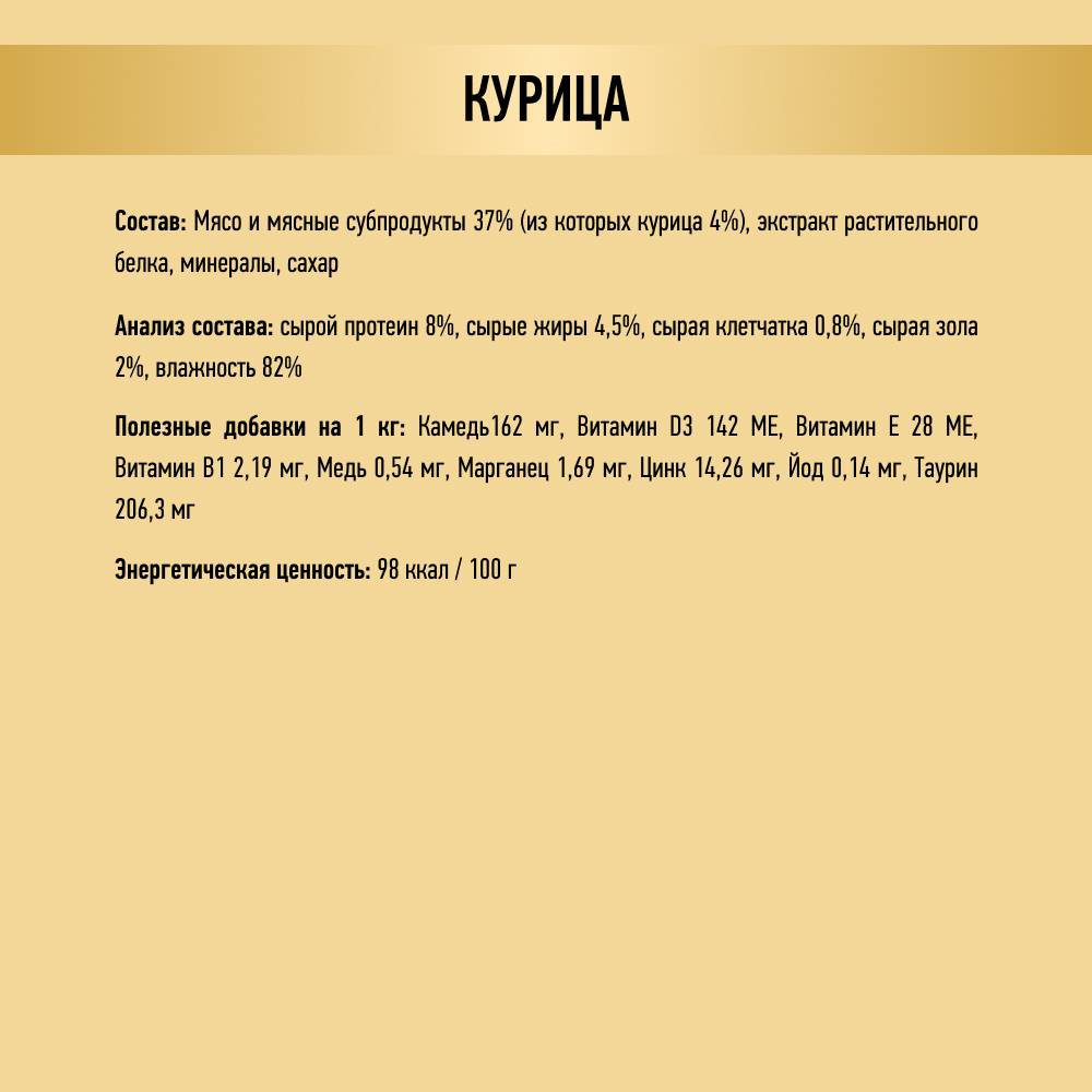 - Питательный состав корма – до 37% мяса, все необходимые питательные вещества (белки, минералы и витамины) для поддержания здоровья и хорошего самочувствия.