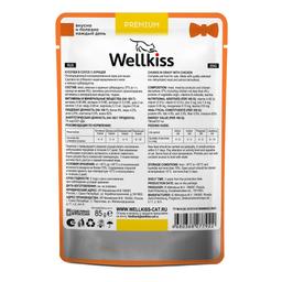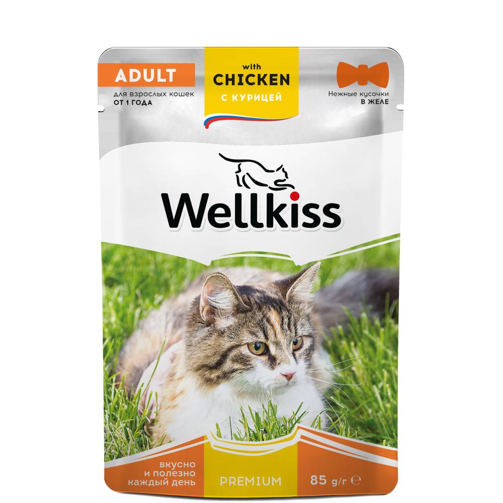 Wellkiss пауч для взрослых кошек нежные кусочки курица в желе – это нежный корм для кошек, который придется по вкусу даже самой привередливой кошке. Нежные кусочки подарят вашему любимцу невероятное удовольствие, а комплекс витаминов и минералов способствует развитию, хорошему настроению и здоровой жизни кошки. WELLKISS – вкус и польза в одном пакетике.