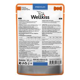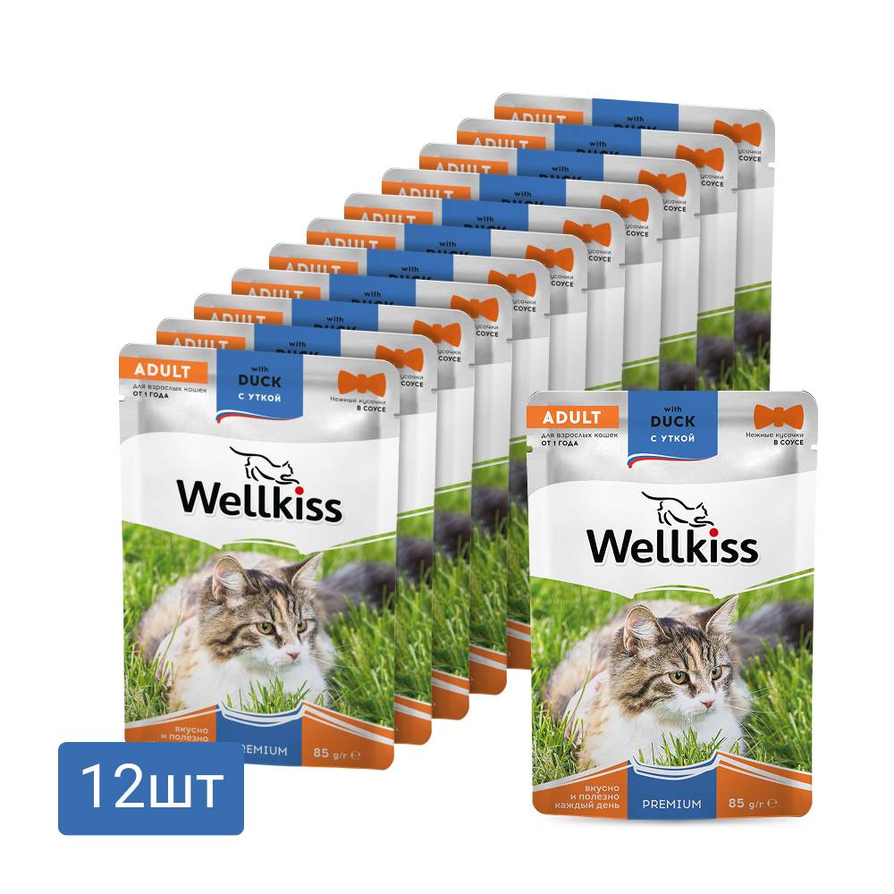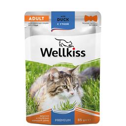 Wellkiss пауч для взрослых кошек нежные кусочки утка в соусе – это нежный корм для кошек, который придется по вкусу даже самой привередливой кошке. Нежные кусочки подарят вашему любимцу невероятное удовольствие, а комплекс витаминов и минералов способствует развитию, хорошему настроению и здоровой жизни кошки. WELLKISS – вкус и польза в одном пакетике.