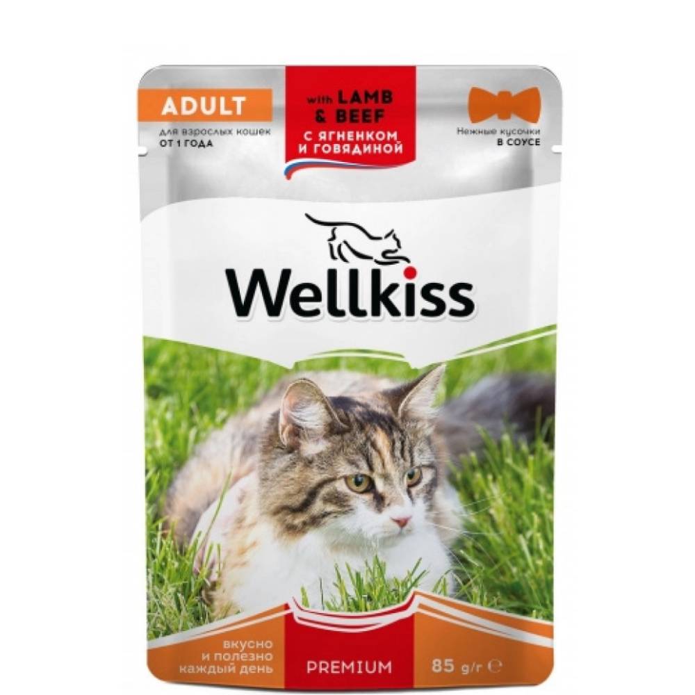 Корм для кошек Wellkiss нежные кусочки с ягненком и говядиной – это изысканный корм для кошек, который придется по вкусу даже самому привередливому питомцу. Нежные кусочки подарят вашему любимцу невероятное удовольствие, а комплекс витаминов и минералов способствует развитию, хорошему настроению и здоровой жизни кошки. WELLKISS – вкус и польза в одном пакетике.