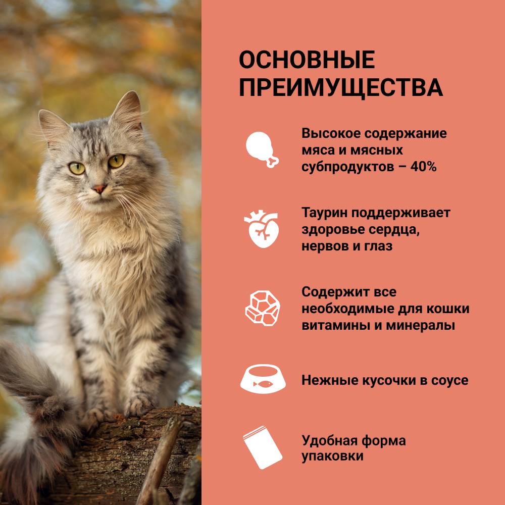 - Сочные, нежные кусочки с мясом или рыбой в сытном соусе подарят настоящее удовольствие Вашей кошке.